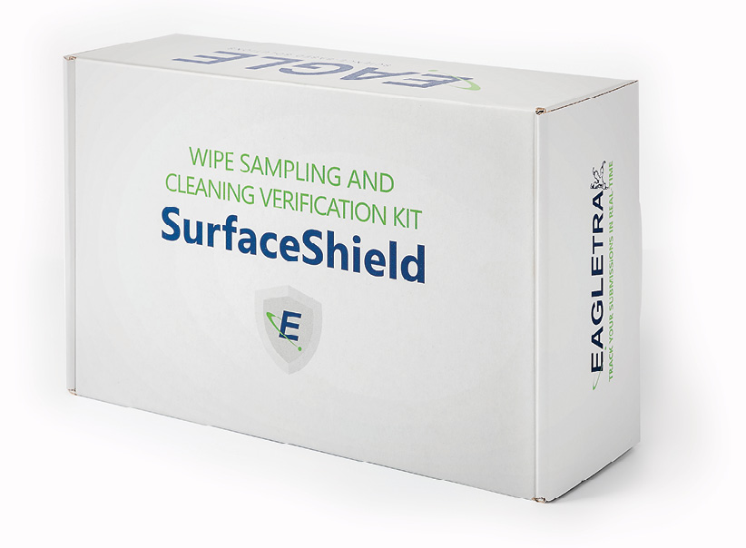 Eagle Analytical Services provides SurfaceShield, a customizable wipe sampling and cleaning verification kit for the detection of drug residues on surfaces. This multipurpose kit can be utilized to achieve and maintain USP <800> compliance while also helping to meet Title 21 Part 211 CFR requirements. The kit is designed to enable pharmacy to conduct testing in multiple locations. Test results are available in 5 business days, or a 2-day rush test may be requested.
