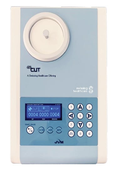 Swisslog Healthcare offers the ezCUT tablet splitter, which is designed to accurately split tablets to fulfill prescriptions of half strength. Designed to increase patient safety, the process of precise tablet splitting helps ensure patients receive the appropriate dosages. Realize lower costs by eliminating the labor of manual splitting and loss of productivity on tasks that can be automated by the ezCUT. The system can help pharmacies to save space and minimize inventory overhead by reducing the quantity of strengths needed to keep on hand for the formulary.